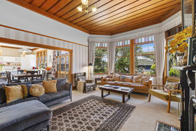 Inside craftsmanship defines this residence. Every detail reflects quality and character - high studs, beautiful wooden ceilings, elegant fireplaces, and the finest native timbers: Totara, Kauri, Rimu, and Matai. The contemporary open-plan kitchen adds effortless modern living. There are four spacious double bedrooms, including a master bedroom with a walk-in wardrobe and ensuite. Natural light and sunshine flood the home, enhancing its welcoming atmosphere.