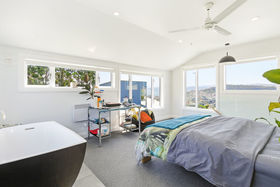 - Four bedrooms and two bathrooms, including an ensuite for the master suite, which occupies the top level, boasting a large walk-in wardrobe and sweeping views over the city and harbour on one side and tranquil bush-clad hills on the other